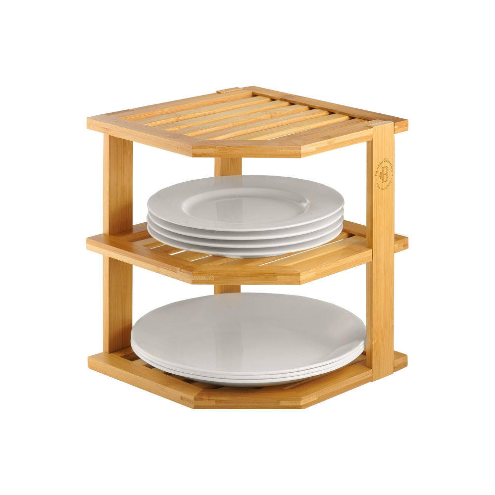 Keep your kitchen neat and organized with this compact bamboo shelf. Its smart corner design fits perfectly inside cabinets or on countertops, helping you store more while saving space. Ideal for stacking plates, bowls, and dishes for quick and easy access.