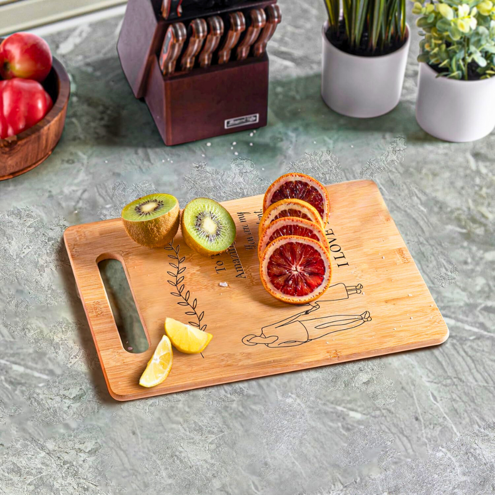 High-Quality Bamboo: Crafted from premium bamboo, this cutting board is durable and eco-friendly. Its smooth surface and sturdy handle make it both functional and decorative, ideal for any kitchen.